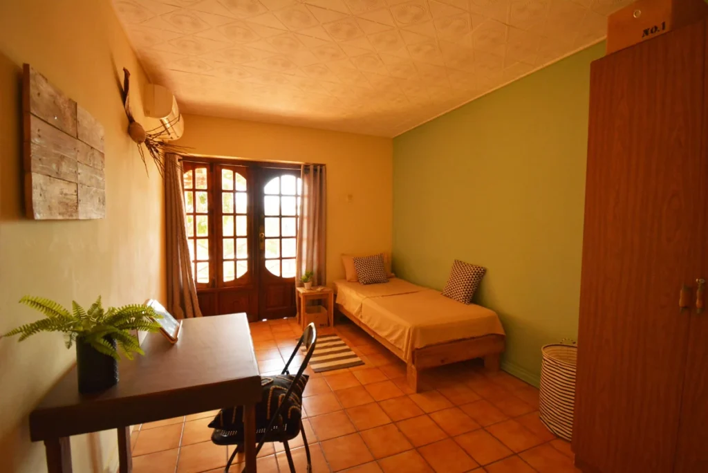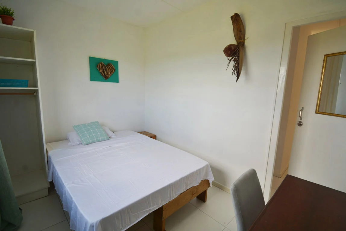 Deze kamer is gelegen op het jongeren- studentencomplex Villa Telamon 8. Hier woon je met vele andere stagiaires en jongeren en beleef je een fantastische en sociale tijd op Curaçao. Naast je kamer maak je ook gebruik van de gezamenlijke keukens, badkamers, terrassen en het grootte zwembad!