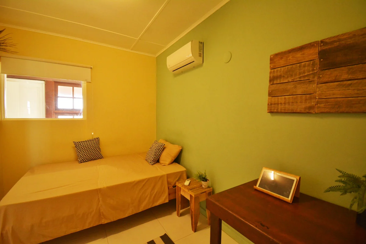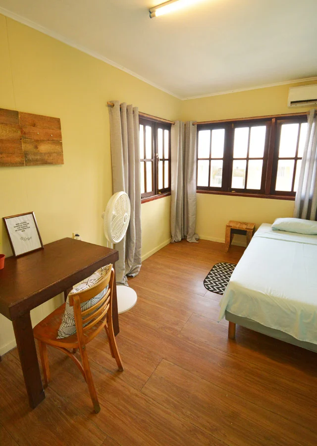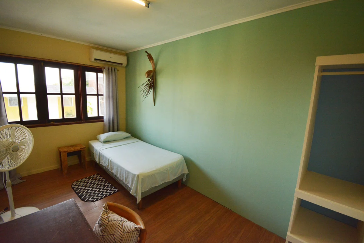 Bij studentenhuis Telamonstraat 43 beschikken wij over een aantal reguliere kamers met eenpersoons bedden. Zoals alle kamers worden ook deze gemeubileerd opgeleverd. Neem alleen je kleding mee en je kunt per direct fijn wonen. Wat er allemaal in je kamer aanwezig is staat omschreven onder het kopje ‘inrichting kamer’. Daarnaast kun je ook nog een aantal extra diensten afnemen zoals airconditioning of een privé koelkast. Deze kamer is gelegen op het jongeren- studentencomplex Villa Vredenberg 43. Hier woon je met vele andere stagiaires en jongeren en beleef je een fantastische en sociale tijd op Curaçao. De kamers hebben allemaal een tropische uitstraling. Naast je kamer maak je ook gebruik van de gezamenlijke keukens, badkamers, terrassen het zwembad en de unieke woonkamer met bar!