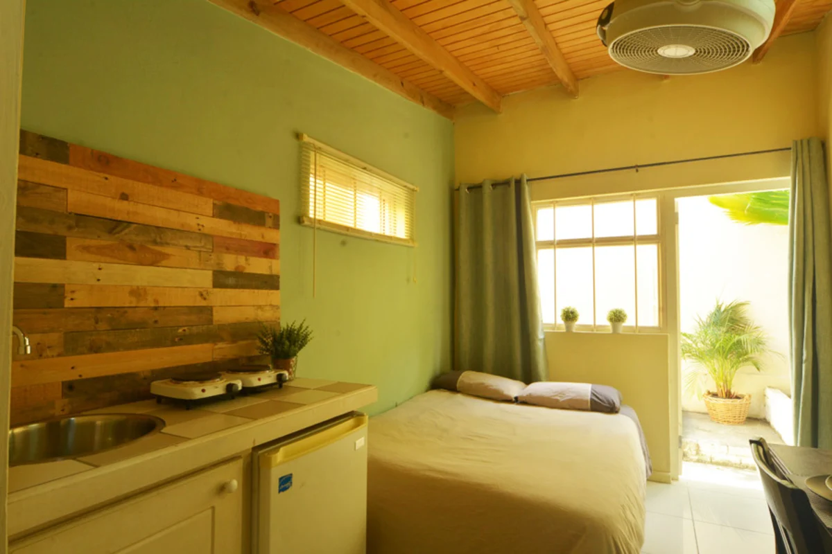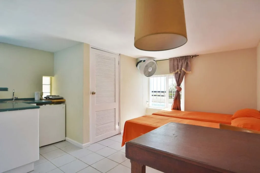 Deze studio is gelegen op het jongeren- studentencomplex Villa Vredenberg 43. Hier woon je met vele andere stagiaires, studenten en jongeren en beleef je een fantastische en sociale tijd op Curaçao. De studio’s hebben allemaal een tropische uitstraling. Naast je studio maak je ook gebruik van de gezamenlijke terrassen, het zwembad en de unieke woonkamer met bar!