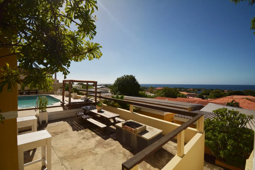 Bij Villa Telamon 8 hebben wij een vijftal afzonderlijke terrassen gemaakt waarbij het meest unieke terras in het hoofdhuis op de 1ste etage gelegen is. Vanaf dit terras heb je een uitzicht over Curaçao van Punda/Pietermaai tot aan de Sea Aquarium Beach met op de achtergrond de Caribische zee. In een studentenhuis met zo’n fantastisch uitzicht zul je niet snel meer wonen.
